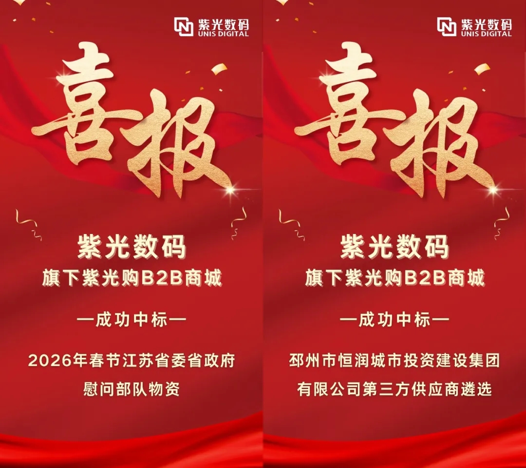 近日,紫光数码旗下B2B采购电商平台紫光购成功中标2026年春节江苏省委省政府慰问部队物资项目、邳州市恒润城市投资建设集团有限公司第三方供应商遴选项目。